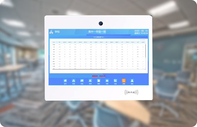 電子班牌可與教室內各種設備連接,然后根據設定來自動調節設備運行狀態。